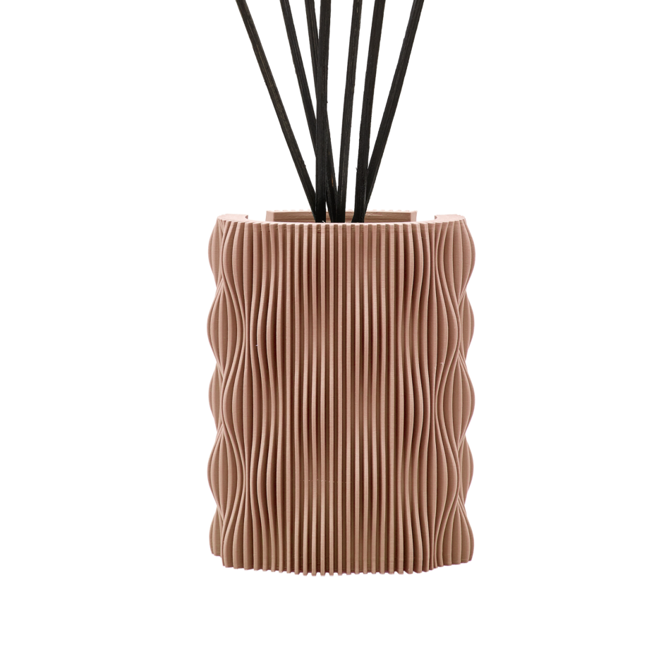 Mettere la ricarica di fragranza per diffusore a bastoncini hypno casa da 200 ml allโinterno del vaso Hypno Casa Art3D e immergere i bastoncini.
